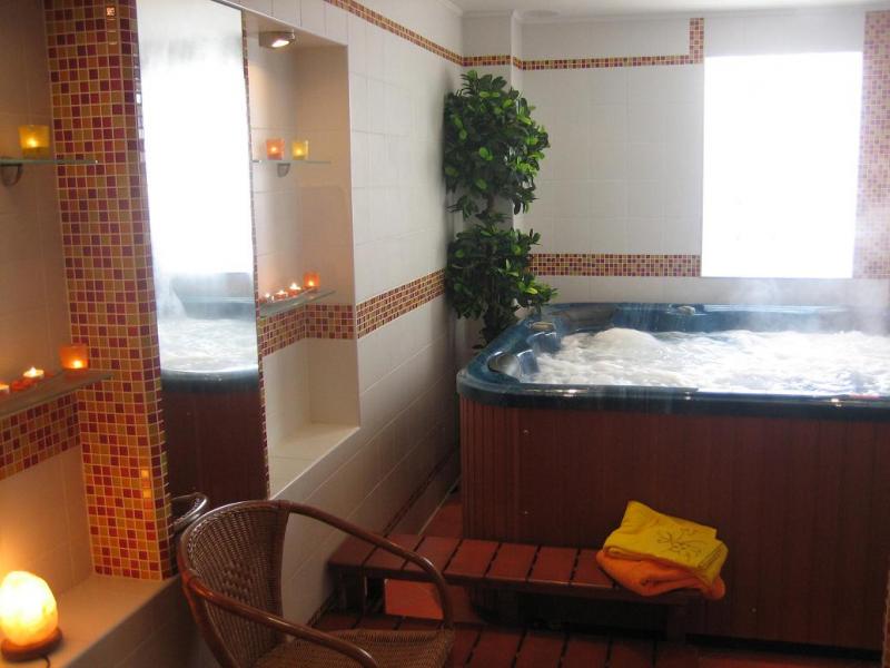 Svůj pobyt můžete strávit v infrasauně pro 2 osoby, která je vybavena barevnou chromoterapií nebo ve whirlpoolu (jacuzzi) o rozměrech 220 x 220 cm, které je určeno pro 5 – 6 osob a má dvě pohodlná lehátka, čtyři sedátka, přes padesát nejrůznějších trysek, které promasírují snad každý kousek Vašeho těla. Nechybí samozřejmě ani masážní sprcha s tropickým deštěm, příjemná křesílka a stoleček a plně vybavený milibar.